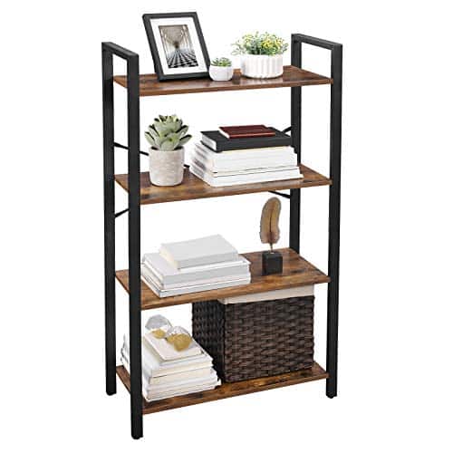 Stigereol med 4 hylder 120 cm høj. Â Mangler du et sted til opbevaring så er her en fin løsning med en stigereol med 5 trin. Kan også bruges som en rumdeler. Farve: Rustik brun spåntræshylder og sort metalramme Mål: 66 x 120 x 30 cm (B x H x D) V
