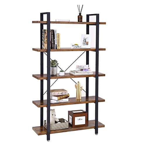 Stigereol med 5 hylder 178 cm høj. Â Mangler du et sted til opbevaring så er her en fin løsning med en stigereol med 5 trin. Kan også bruges som en rumdeler. Farve: Rustik brun spåntræshylder og sort metalramme Mål: 105 x 178 x 33 cm (B x H x D)